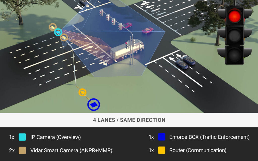 Enforce BOX może automatycznie wykrywać szeroki zakres wykroczeń drogowych jednocześnie nawet na 4 pasach ruchu.