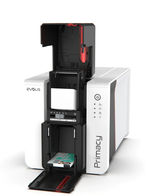 Drukarka Evolis Primacy 2 drukuje karty plastikowe, identyfikacyjne dostosowane do Twoich potrzeb. Dzięki jednej z najszybszych prędkości druku na rynku oraz dużej pojemności podajnika i kosza, Primacy 2 jest idealnym rozwiązaniem dla średnich i dużych nakładów. Tryb drukowania w wysokiej rozdzielczości i możliwość tworzenia profili kolorów pozwalają na uzyskanie oszałamiających rezultatów, zbliżonych do rzeczywistych kolorów z wysokiej jakości wykończeniem kolorów z wysokiej jakości wykończeniem. Łatwe tworzenie własnych kart o odpowiednim poziomie bezpieczeństwa. Od najprostszych do najbardziej bezpiecznych kart,