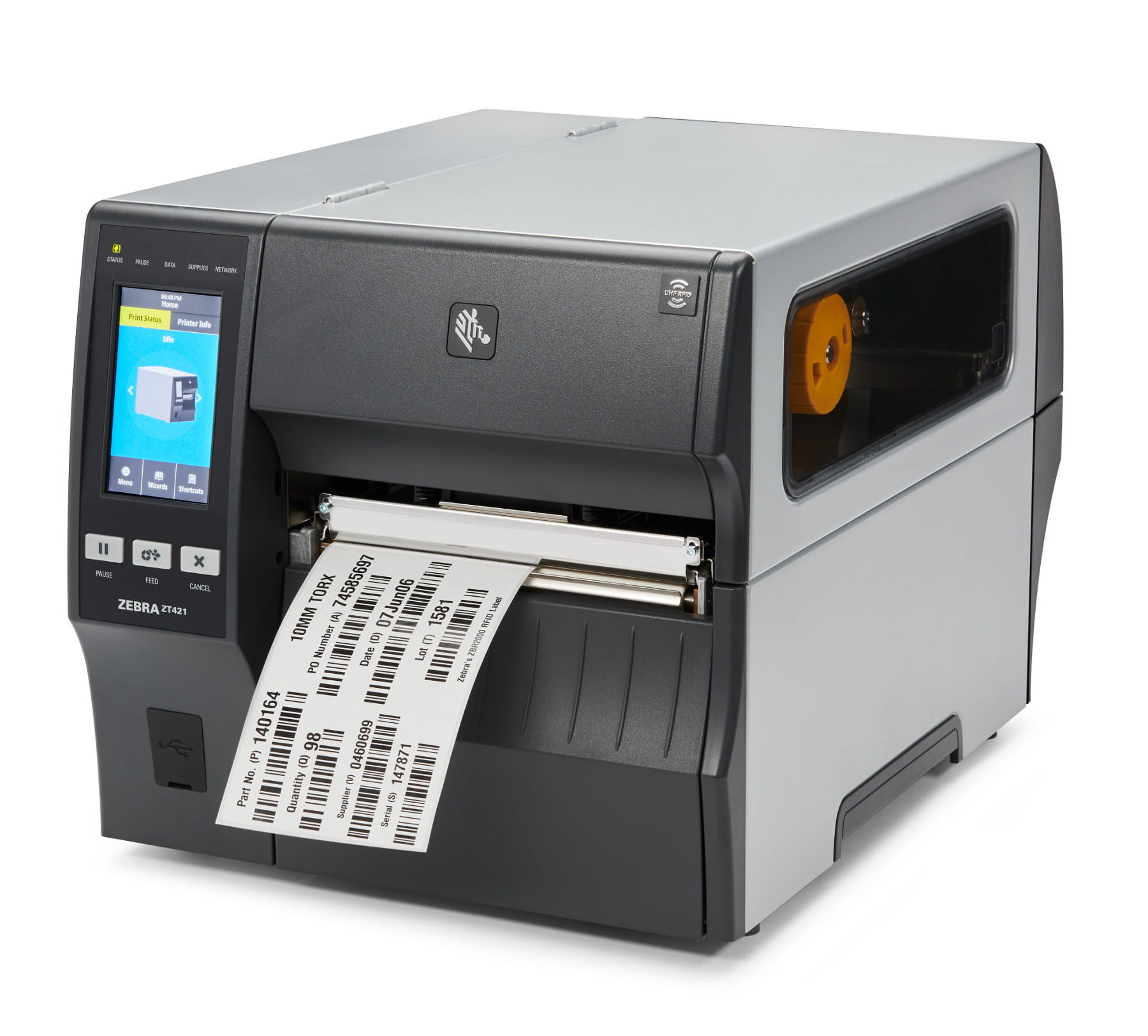 Model ZT421 jest wyposażony w kolorowy wyświetlacz 4,3 ”z funkcją dotykową. Kolorowy wyświetlacz ułatwia codzienną pracę. Znajdziemy na nim opcje konfiguracja urządzenia oraz informacje o jego stanie. Dzięki funkcji dotykowej drukarkę można obsługiwać szybko i wygodnie, a samodzielne rozwiązania do etykietowania są możliwe bez podłączania do komputera. Płynne i pozbawione przestojów działanie poszczególnych funkcji sprzętu zapewnia wydajny procesor ARM Cortex A7 oraz 256 MB pamięci RAM.